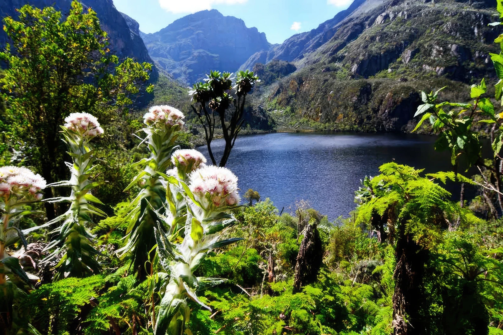 • “Botanical Big Game” Flora: The sheer size and bizarre appearance of its afro-alpine flora (giant lobelias, groundsels, heathers) found at high altitudes, and nowhere else on Earth, create a surreal, almost prehistoric landscape that is utterly distinct from the vegetation on other high African mountains or temperate alpine regions.