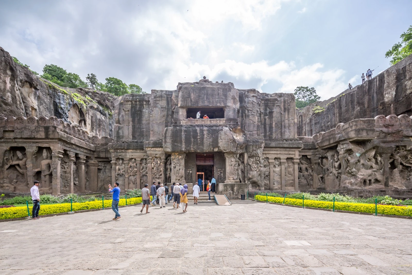 - Kailasa Temple (Cave 16): This is the undisputed centerpiece and the most breathtaking achievement at Ellora. It is not a cave within the rock, but an entire multi-storied temple carved out of a single, massive piece of solid rock, from the top down. It’s an astounding feat of engineering and artistry, simulating a freestanding structural temple, complete with a massive courtyard, a gateway, a central shrine dedicated to Lord Shiva, and numerous subsidiary shrines and pillars. Its scale and intricacy are mind-boggling, estimated to have involved the removal of 200,000 to 400,000 tons of rock.