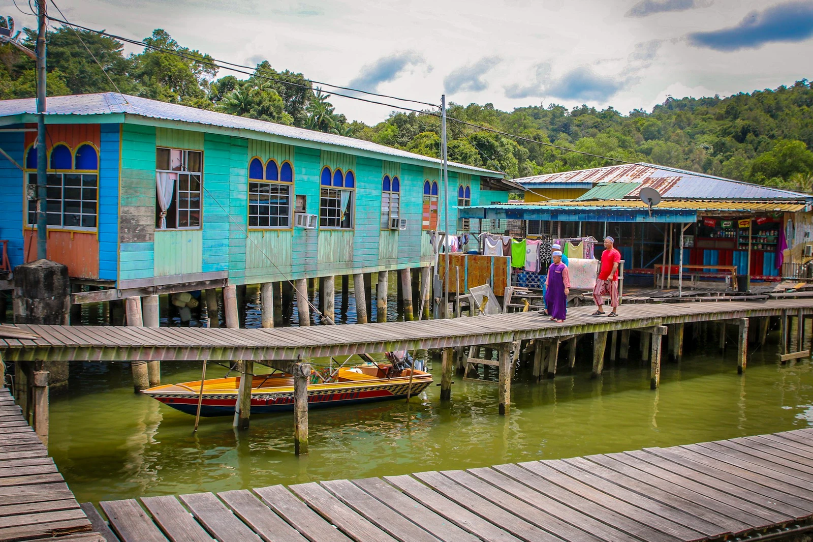 - Houses on Stilts: The most striking feature is the vast collection of traditional wooden houses built entirely on stilts over the Brunei River. These houses are painted in various colors and are intricately connected by a labyrinthine network of wooden boardwalks and concrete jetties.