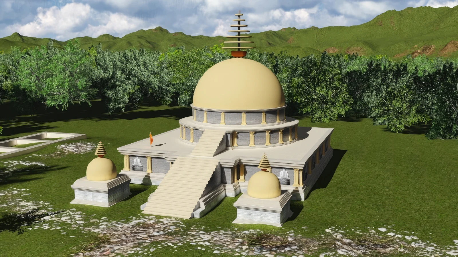 - Stone and Stucco Construction: The primary building materials were local stone (limestone and slate), often combined with lime plaster and stucco, particularly for sculptures and decorative elements.