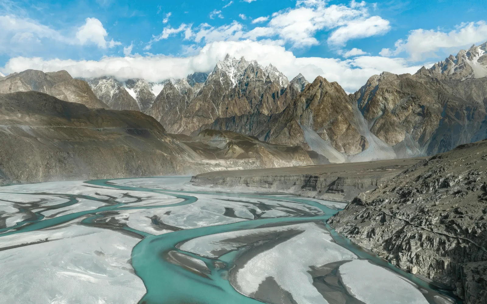 - Hunza River: The Hunza River flows through the heart of the valley, its glacial meltwater often appearing milky blue or grey, carving a dramatic gorge.