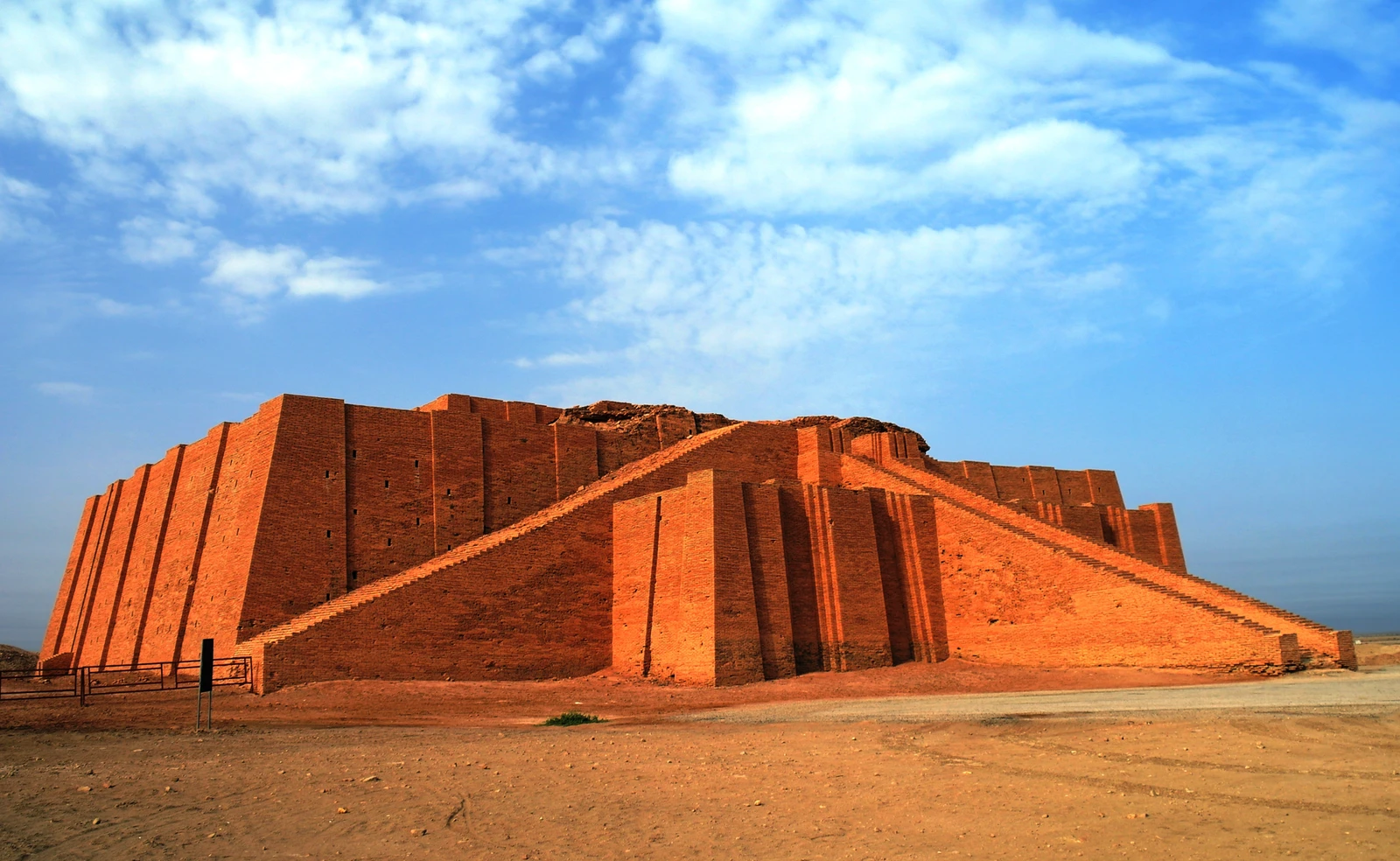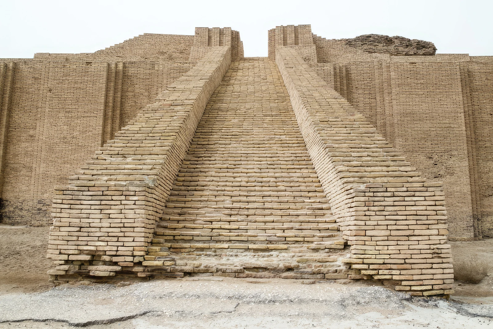 • Monumental Staircases: The first tier of the ziggurat is ascended by three monumental staircases, each with around 100 steps. Two staircases run parallel to the side walls, and one juts out from the center, converging at a gatehouse on the first platform. From there, a single staircase led to the temple at the summit.