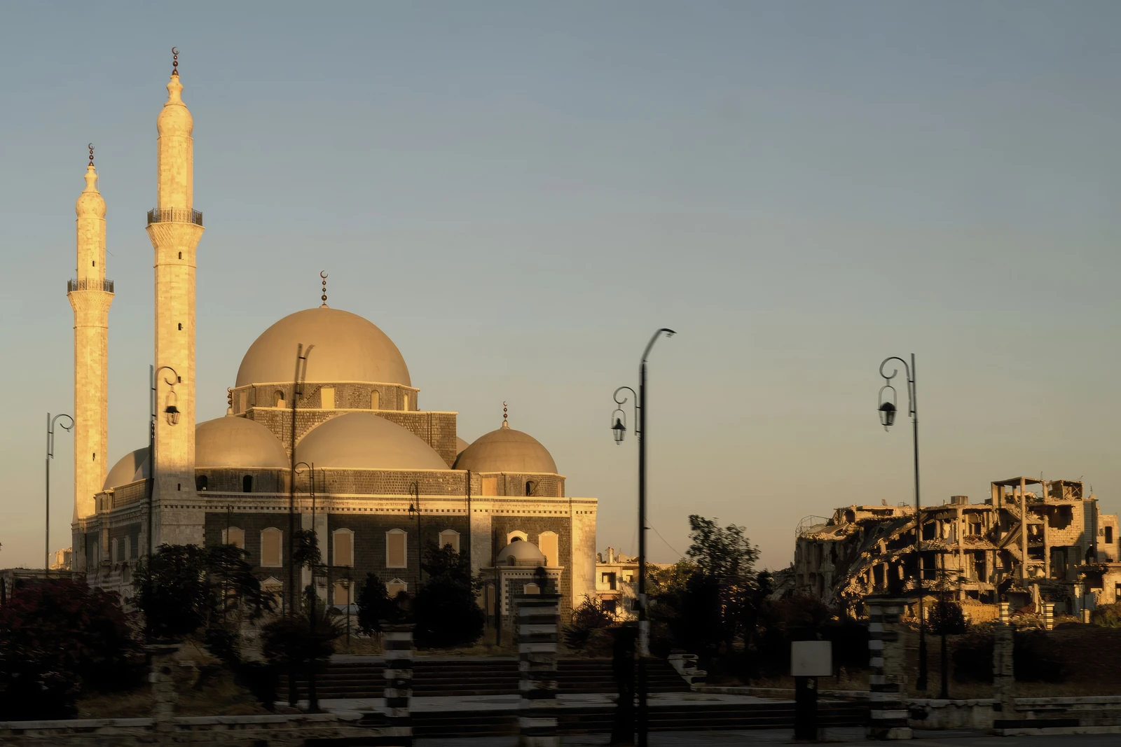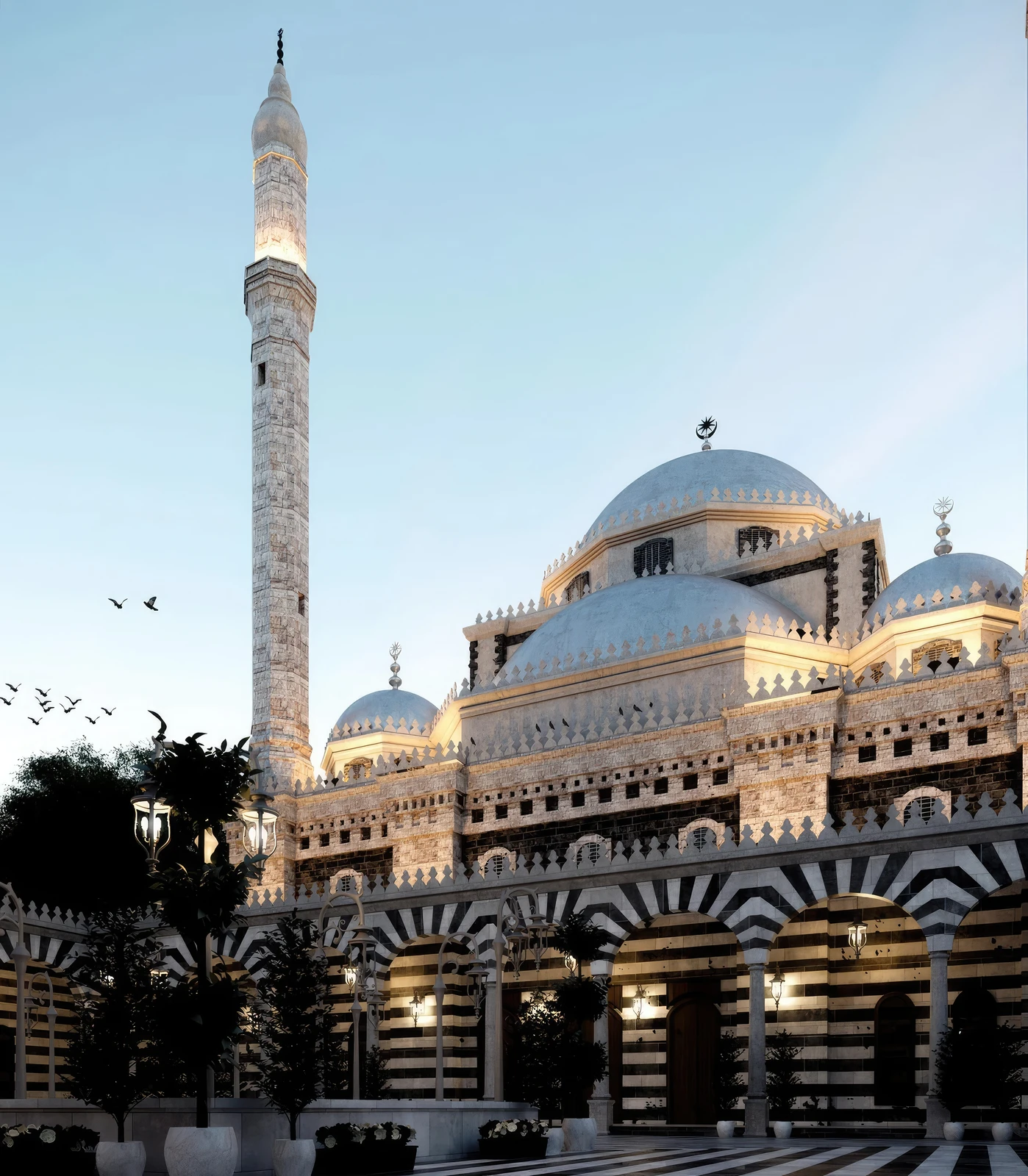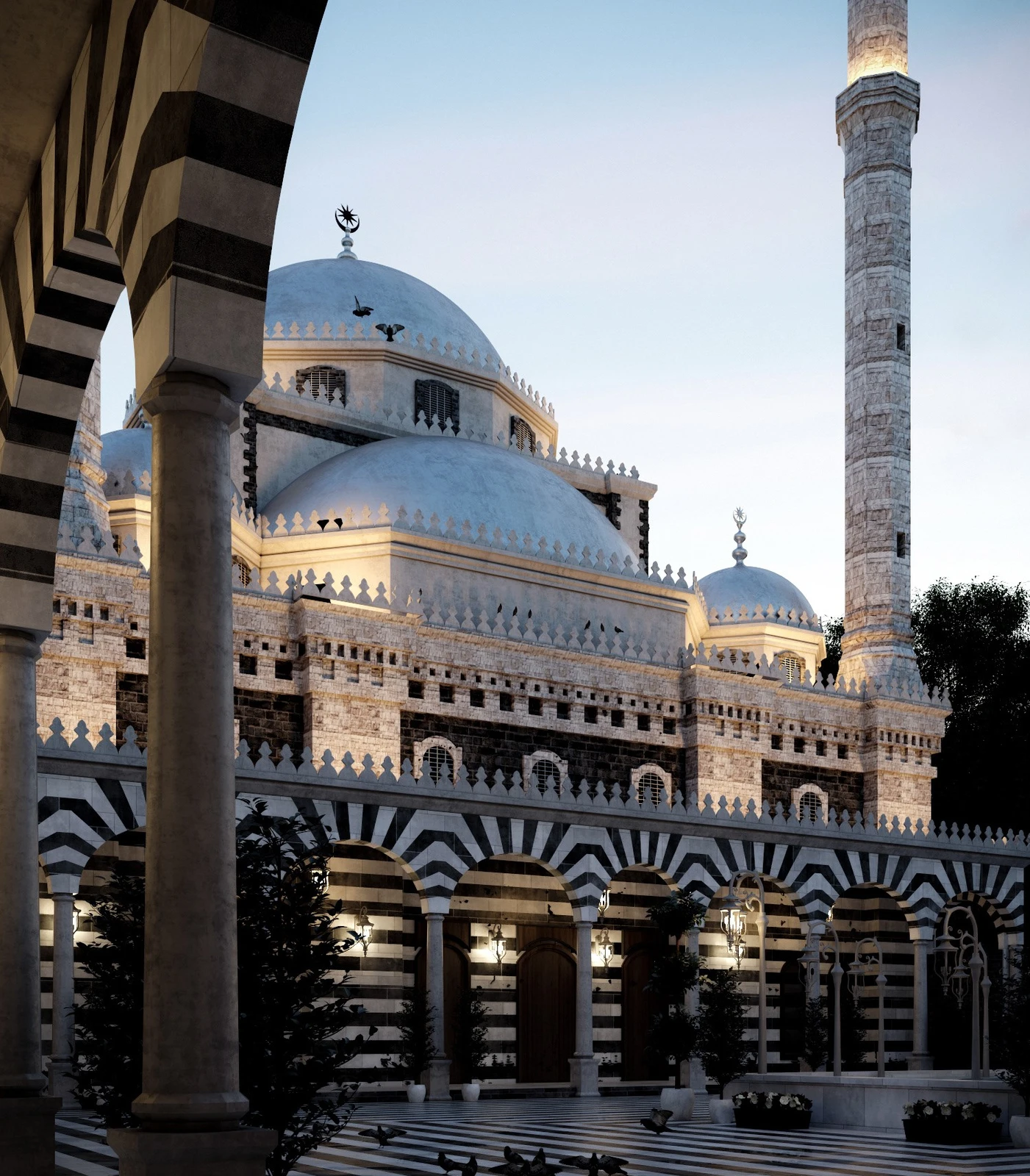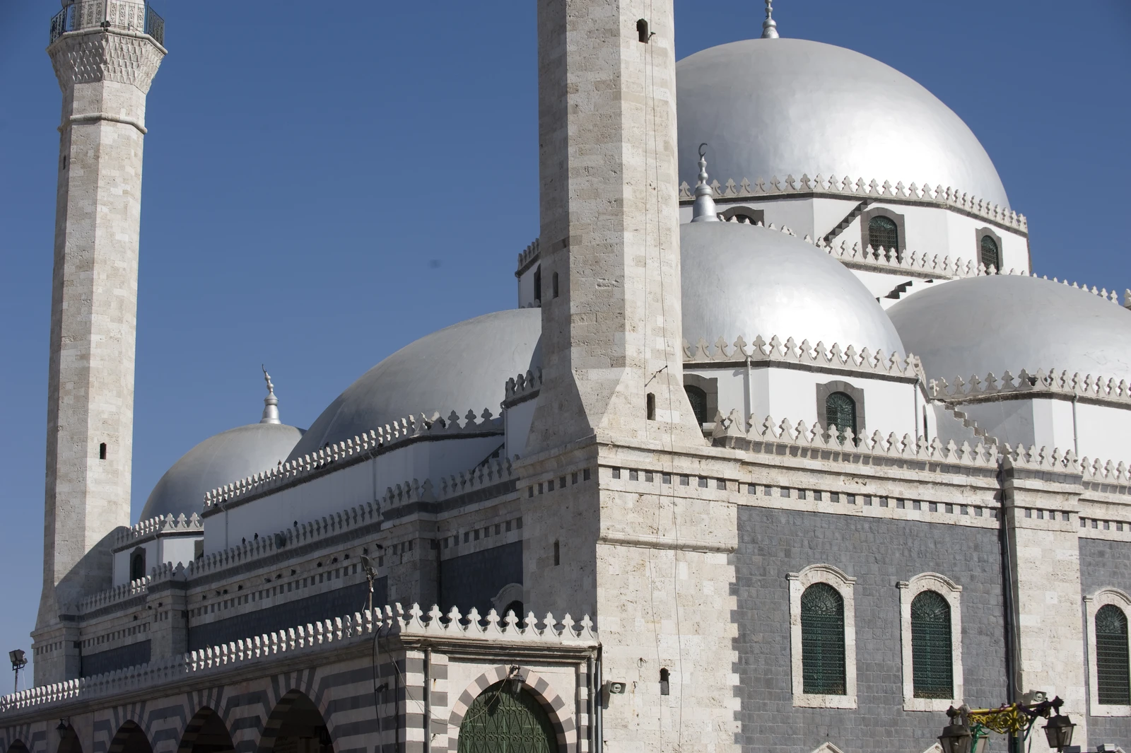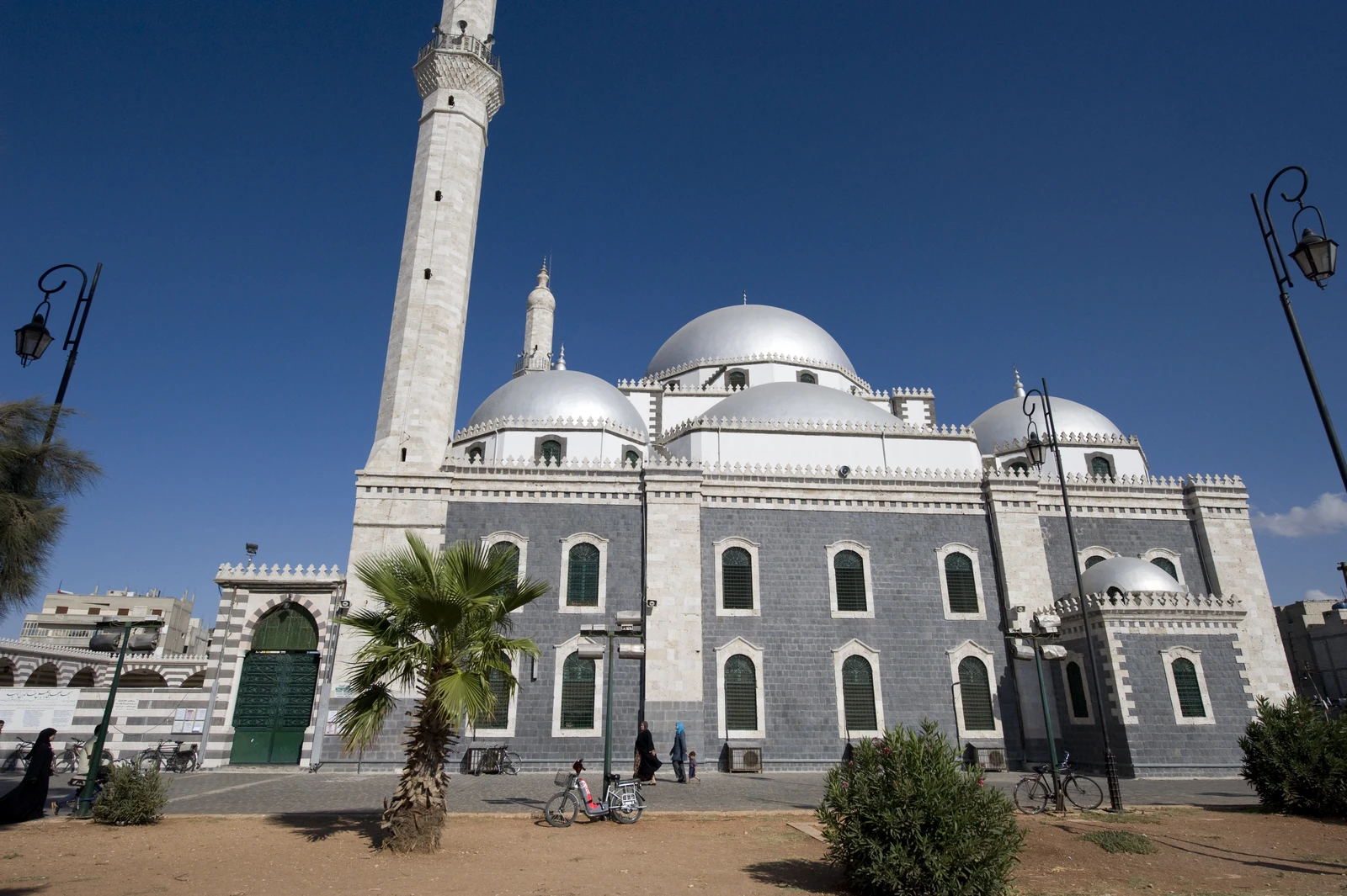 - Distinctive Domes: The mosque is easily recognizable by its series of large, silver-colored domes, with a prominent central dome crowning the prayer hall. This contrasts with the more traditional stone domes found on older Syrian mosques.