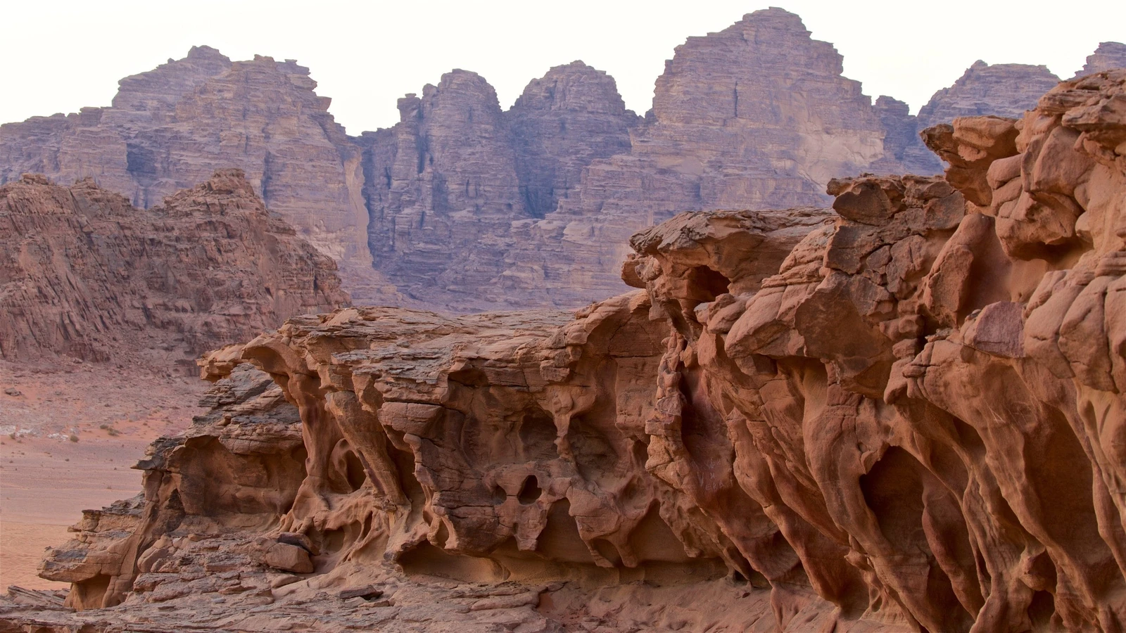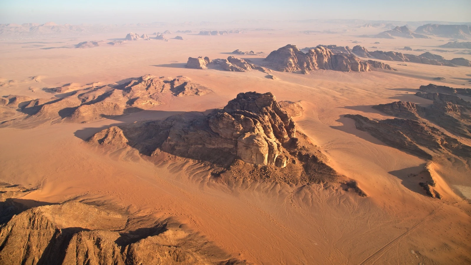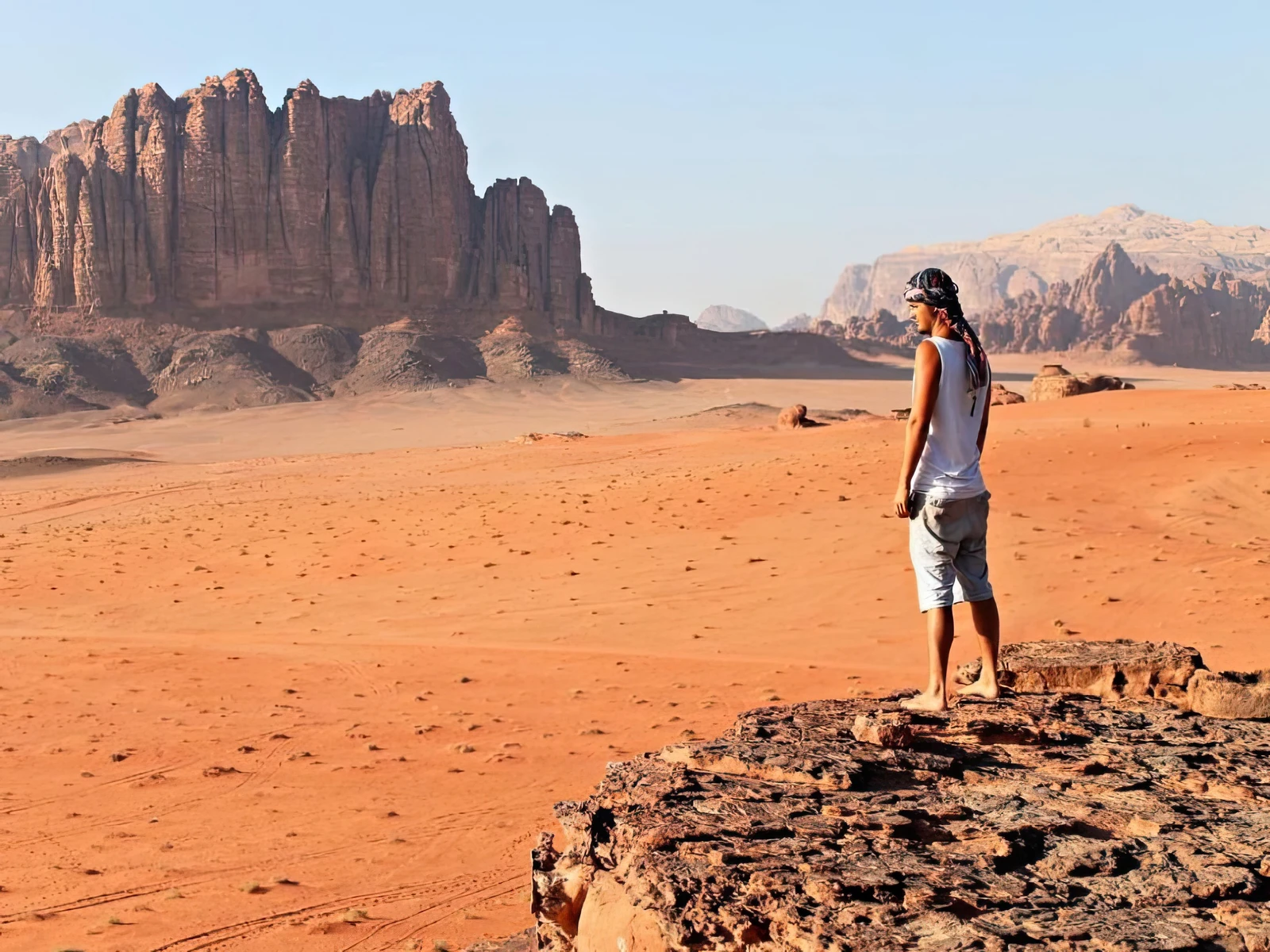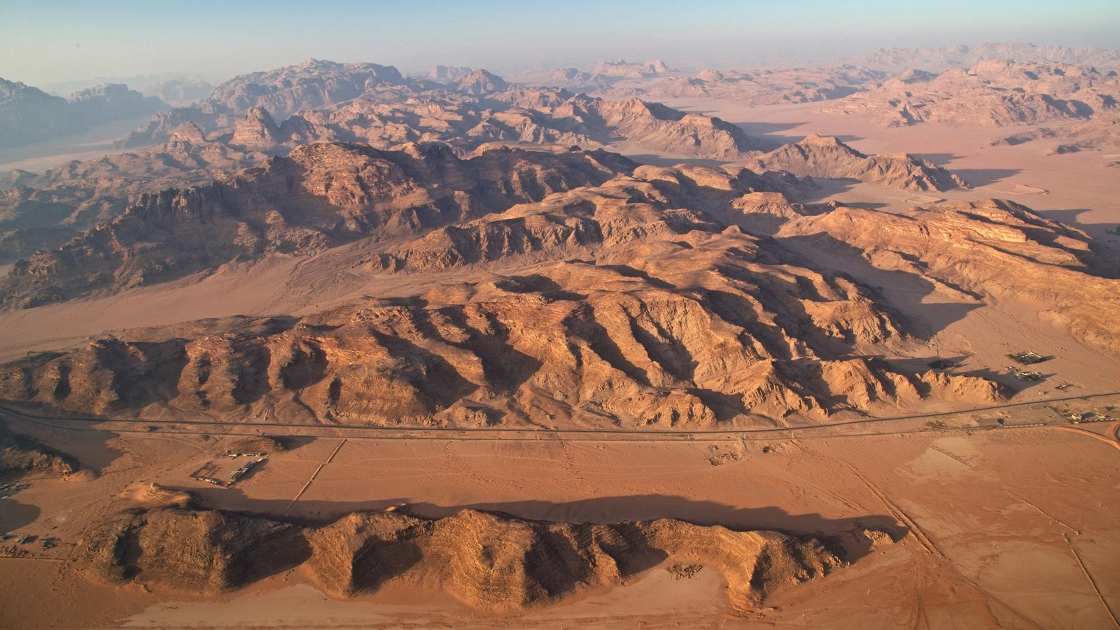 Wadi Rum’s landscape is an awe-inspiring vista of dramatic natural formations rather than man-made architecture.