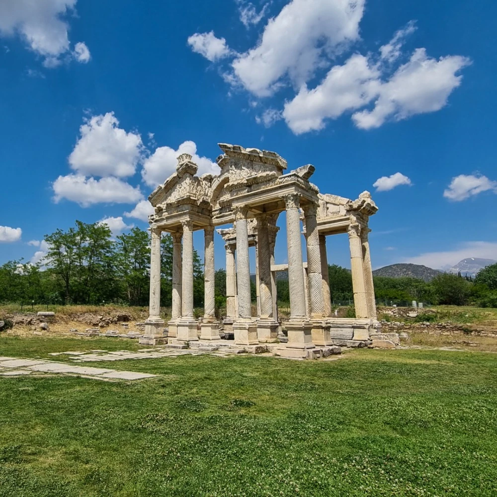 - The Tetrapylon: This richly decorated monumental gateway is a highlight of the site. It once served as the ceremonial entrance to the Temple of Aphrodite and is one of the best-preserved structures at Aphrodisias.