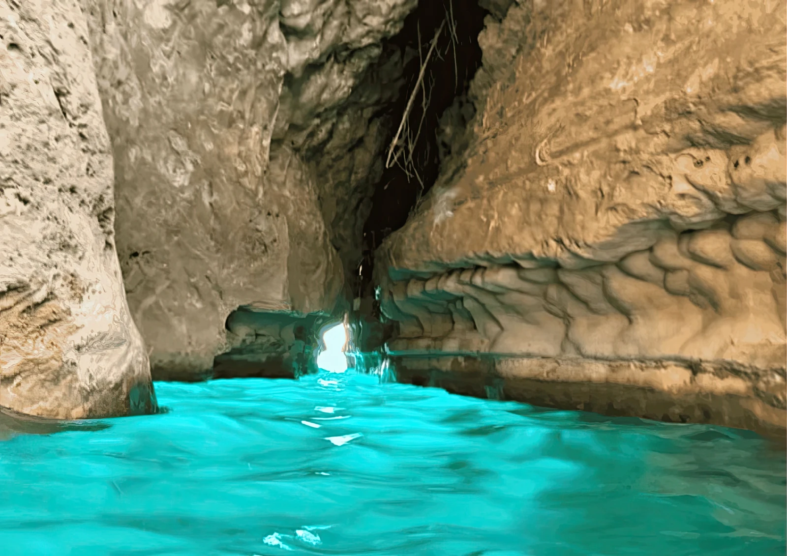 - Hidden Cave and Waterfall: The ultimate reward of the hike is a secret cave, accessible only by swimming through a narrow crevice between rocks (which may require diving underwater depending on water levels). Inside, a beautiful waterfall cascades into the cavern, creating a magical and echoing environment.