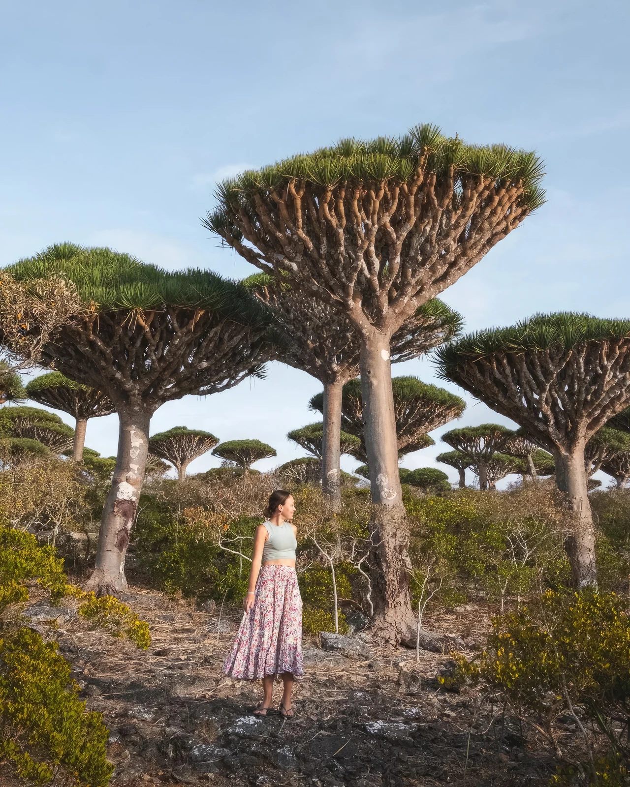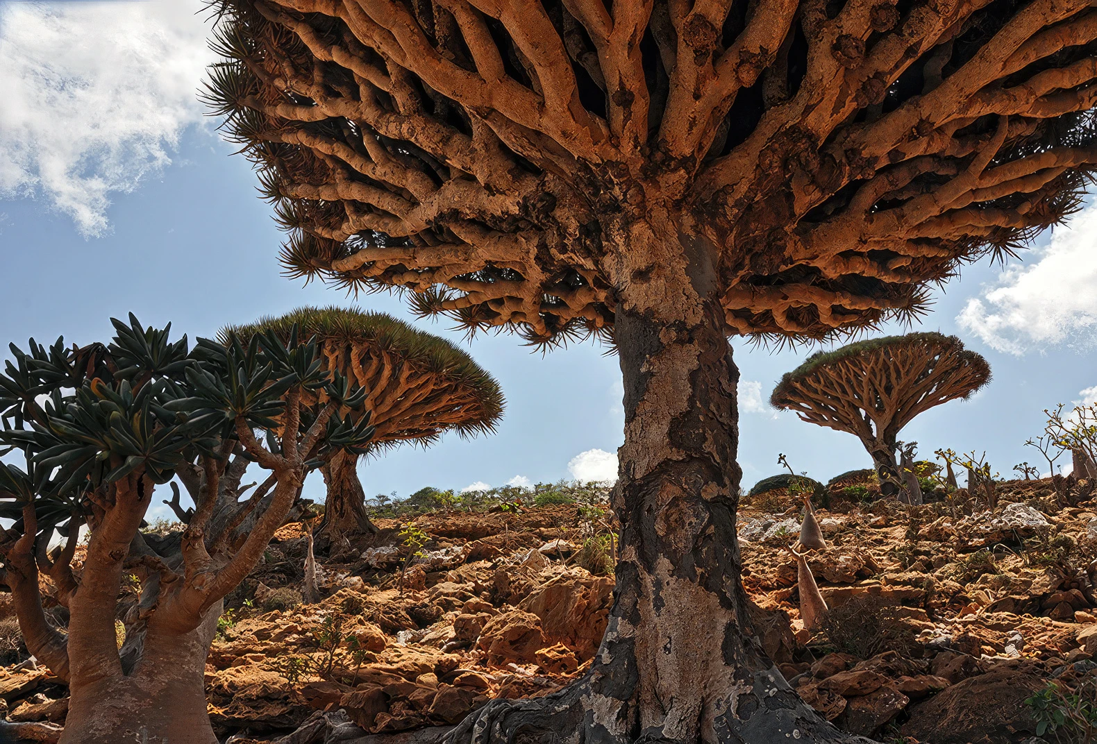 - Dragon’s Blood Trees (Dracaena cinnabari): The most iconic and famous endemic plant, these umbrella-shaped trees with their distinctive red sap create an otherworldly forest, particularly on the Dixam Plateau and Homhil Protected Area.