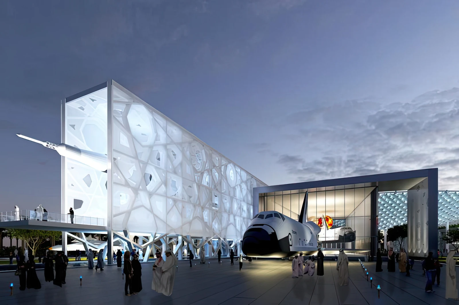 - Materials and Aesthetics: The exterior cladding and roof paving utilize high-quality Turkish marble. The design incorporates Islamic patterns, corners, and walkways, mirroring traditional Kuwaiti urban experiences. The large solar shade canopy features 2,000 LED-lit shingles for evening light shows and daytime shade.