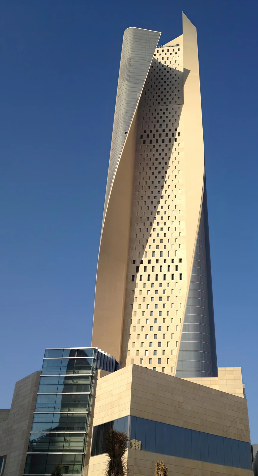- Environmental Integration: Its design specifically addresses the challenging desert climate through its unique form and material choices (e.g., the limestone-clad south facade and the sculpted opening), a level of environmental integration that sets it apart from many other skyscrapers built primarily for height or aesthetic alone.