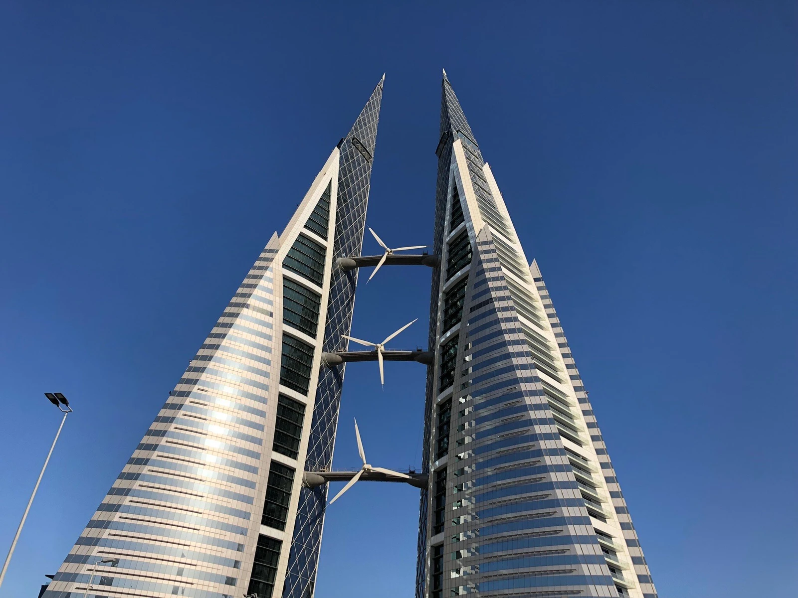 The Bahrain World Trade Center is famous for its groundbreaking integration of renewable energy and its iconic presence in Manama’s skyline: