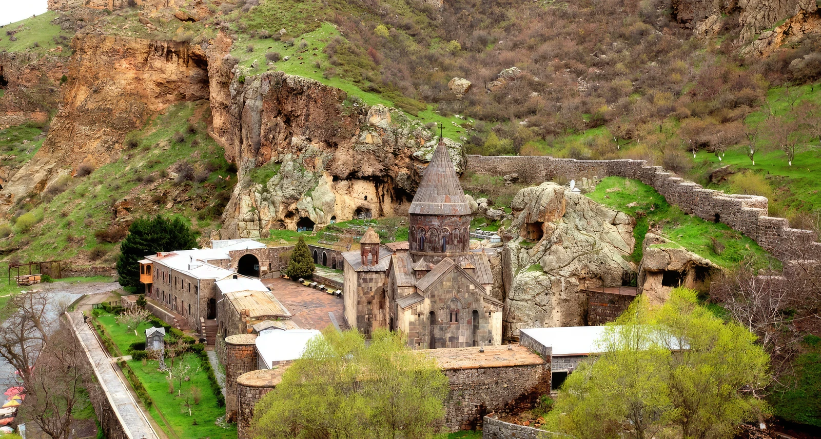 Geghard Monastery is a remarkable example of medieval Armenian monastic architecture, seamlessly integrated into its natural surroundings.