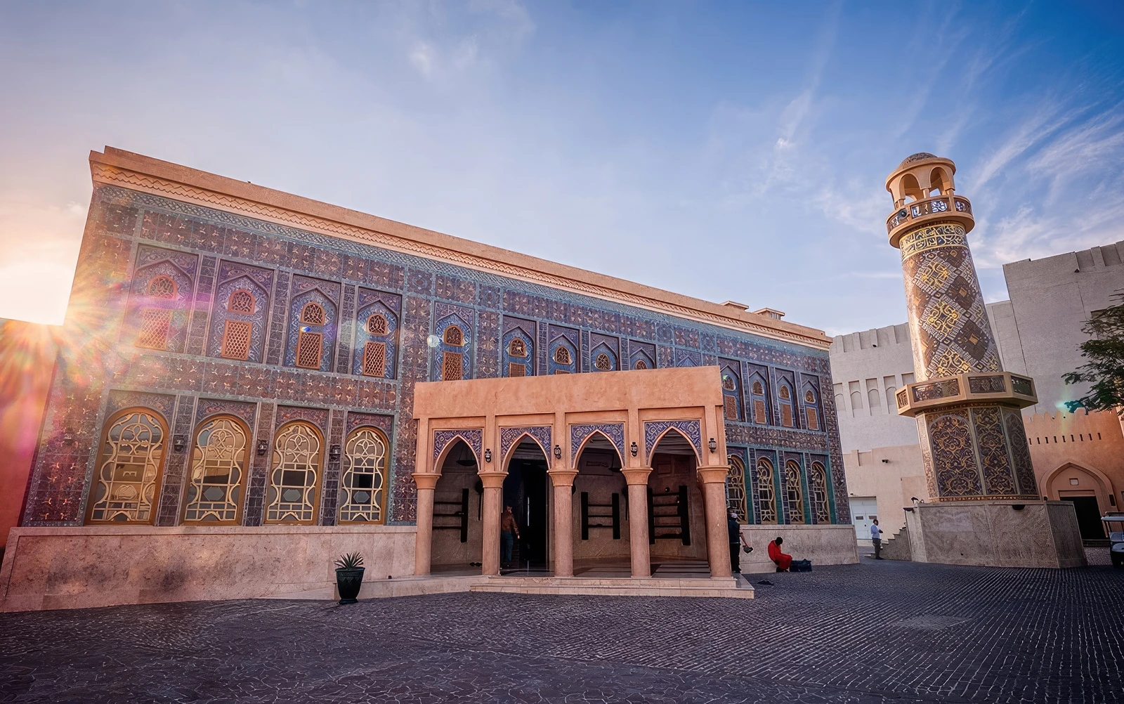 - Architectural Style: The village is designed to resemble a traditional Qatari al fareej (a historical neighborhood). It features winding, shaded alleyways, courtyards, and buildings with sand-colored facades and flat roofs. This traditional aesthetic is juxtaposed with magnificent, large-scale structures.