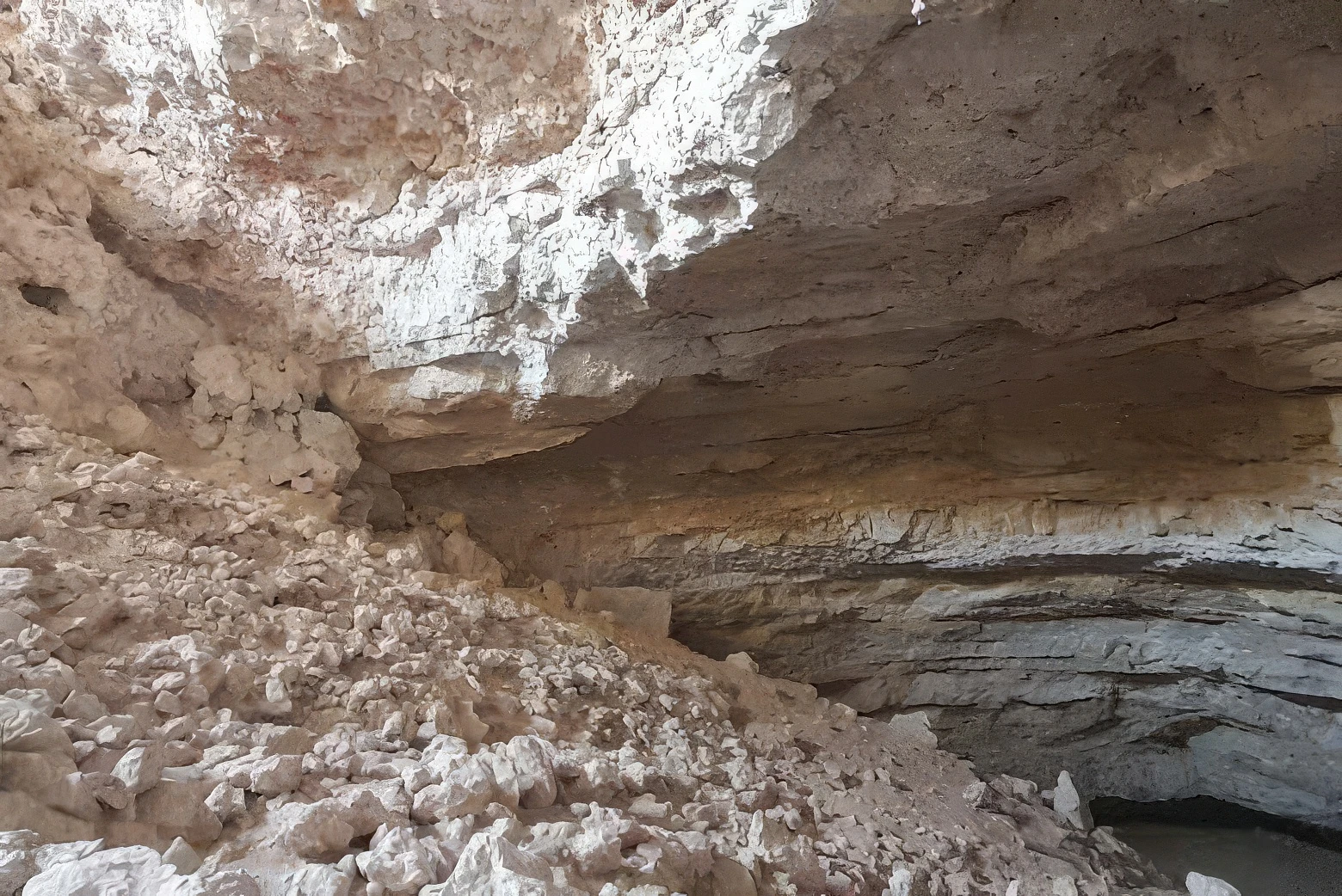 - Geological Formation: Dahl Al Misfir is a karst cave formed over millennia through the dissolution of softer rock layers, primarily gypsum, by groundwater. The cave is estimated to have formed between 325,000 and 500,000 years ago during the Middle Pleistocene era. Its entrance is a wide opening in the desert floor that leads down a rocky path into the main chamber.