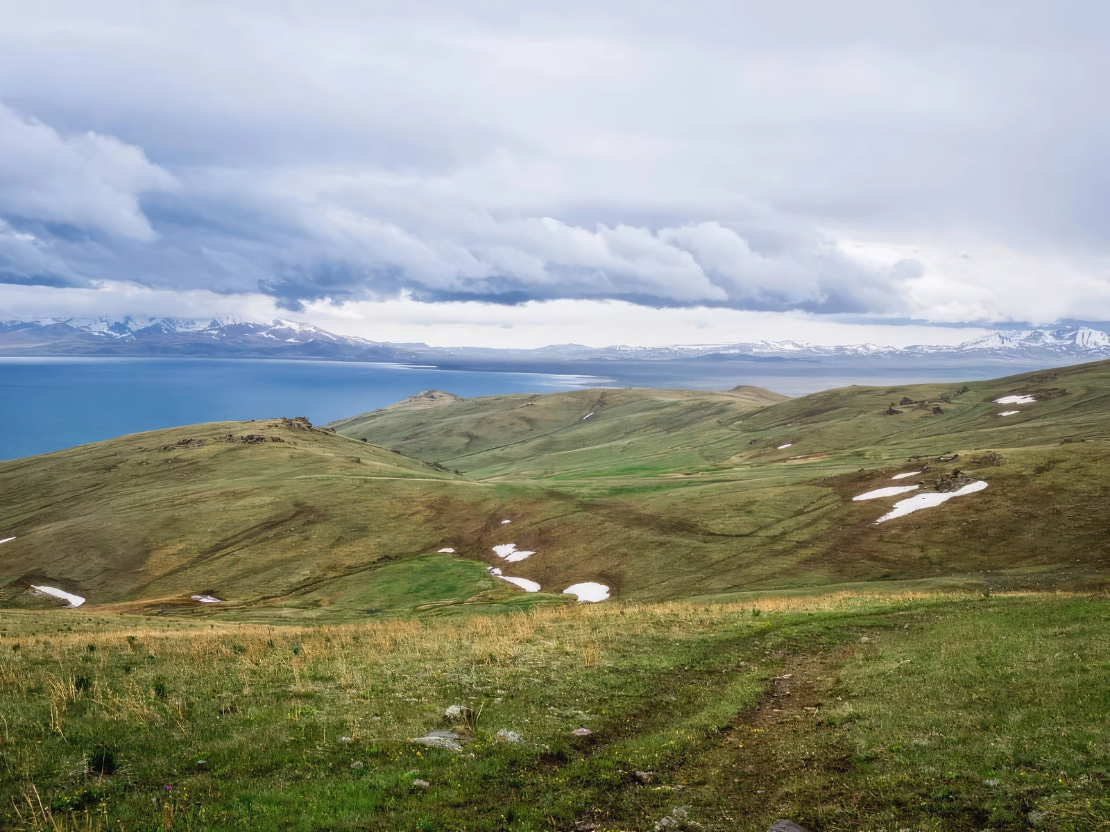 • The Jailoo (Summer Pasture): The lake is set in a massive, treeless mountain plain. This entire basin is a jailoo, a summer pasture. In the warmer months, the landscape is a rolling carpet of lush green grass, dotted with wildflowers, including the rare edelweiss.