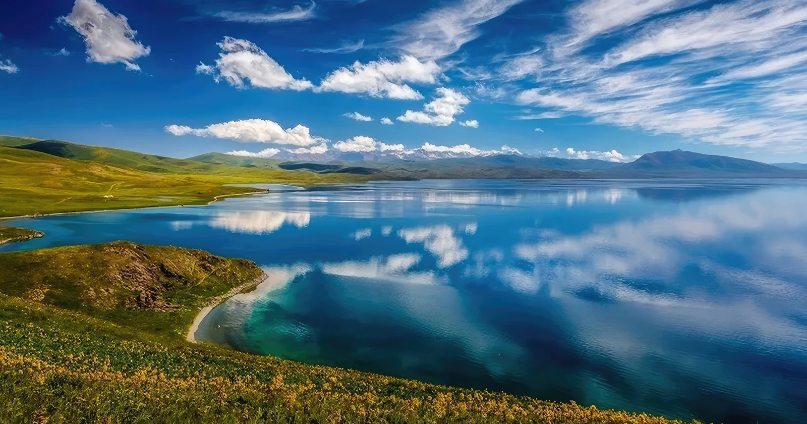 • Pristine and Remote Beauty: The lake’s inaccessibility has preserved its wild and unspoiled character. The vast, open landscape, the serene blue water, and the immense sky create a profound sense of peace and solitude.