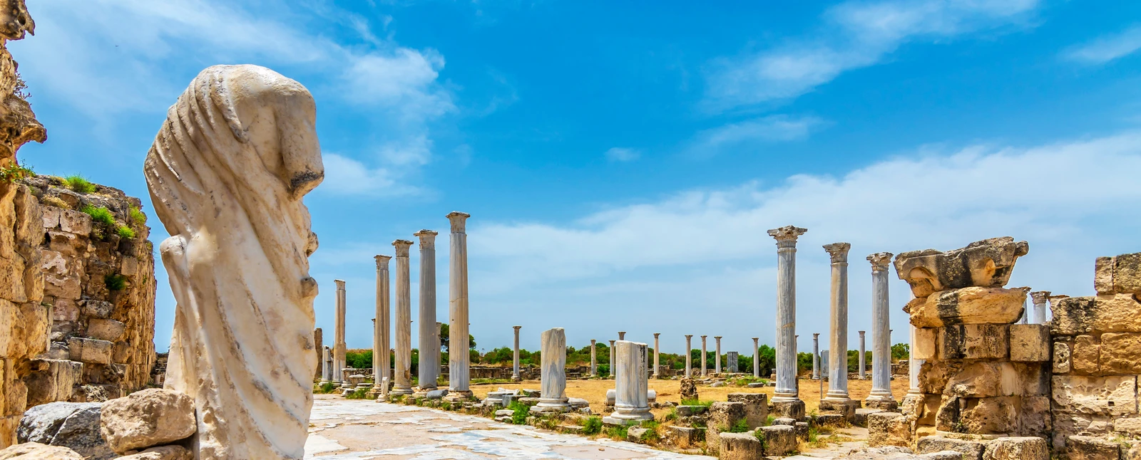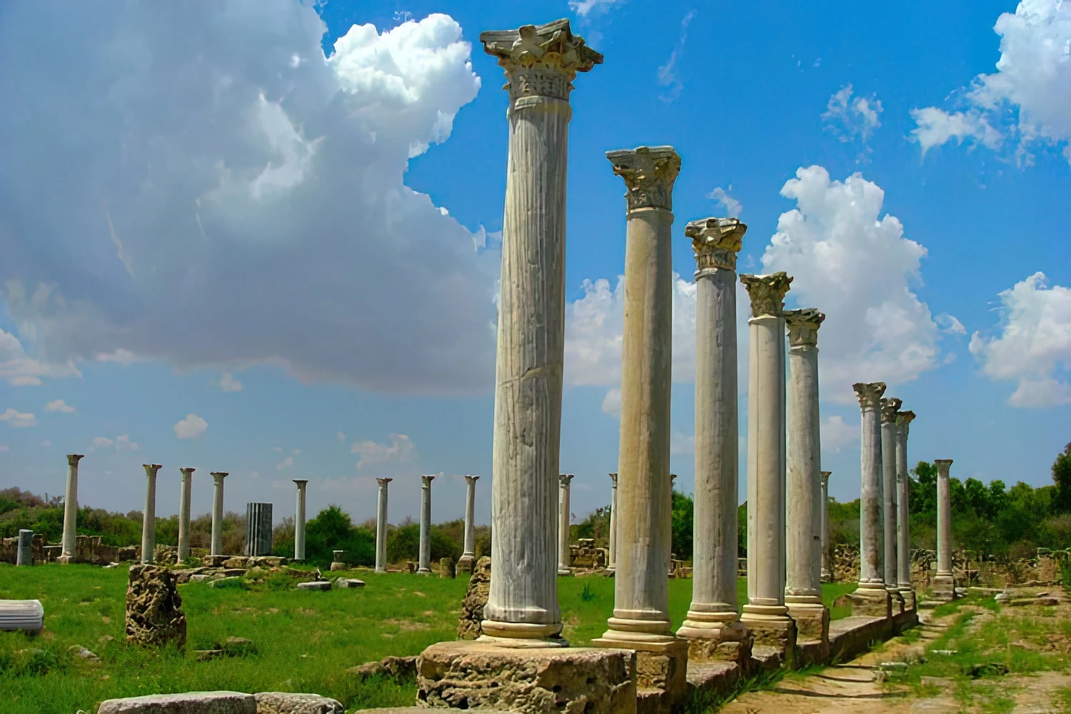 The Ancient City of Salamis, located on the east coast of Cyprus, was once the island’s most important and magnificent city-kingdom. With a history stretching back to the 11th century BC, its origins are steeped in Greek mythology, said to have been founded by the Trojan War hero Teucer. For centuries, Salamis was a major center of commerce and culture, flourishing under successive Assyrian, Egyptian, Persian, Greek, and Roman rule. Today, its sprawling archaeological site is one of the most impressive in the Mediterranean, featuring the extensive ruins of a grand Roman city, including a massive gymnasium, theatre, and public baths, all set against the beautiful backdrop of the sea.