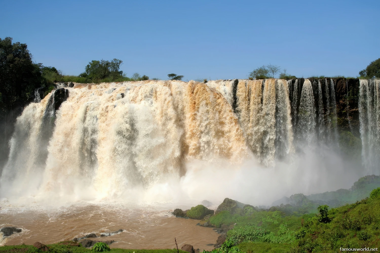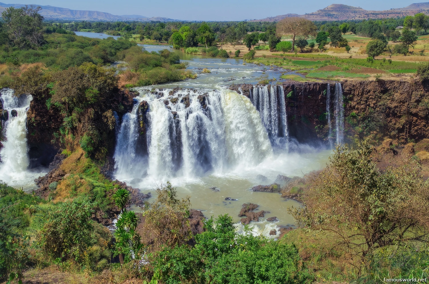 The Blue Nile Falls are famous for being the most dramatic and powerful waterfall on the entire course of the Nile River.