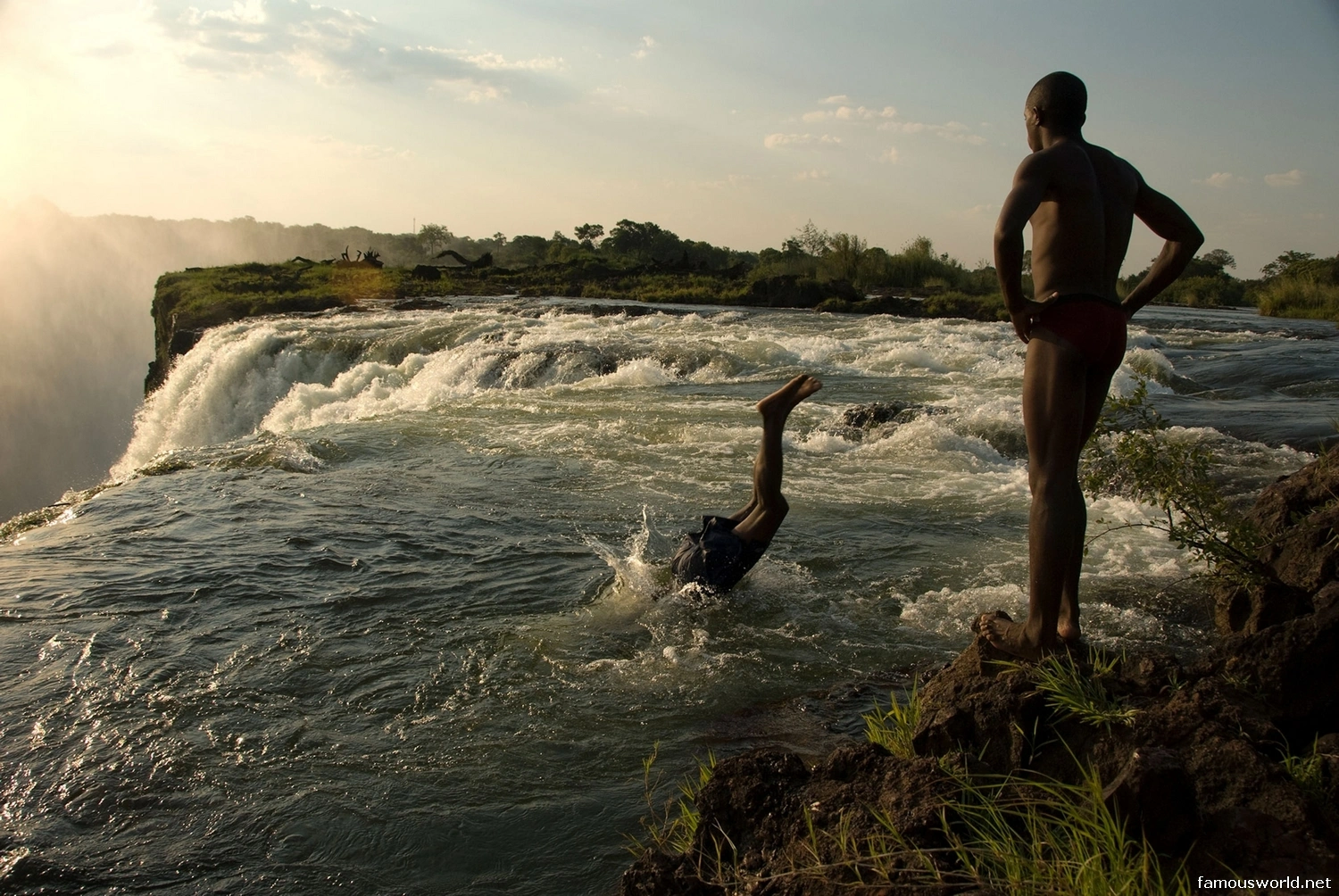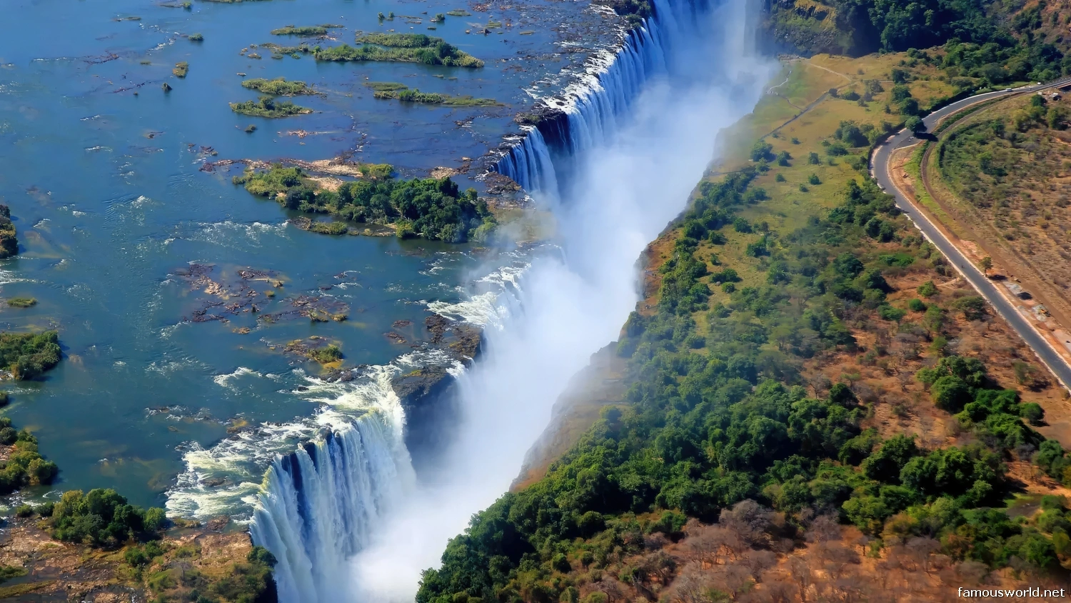 • Location: On the Zambezi River, forming the natural border between Zambia and Zimbabwe in Southern Africa. The nearest towns are Livingstone, Zambia, and Victoria Falls, Zimbabwe.