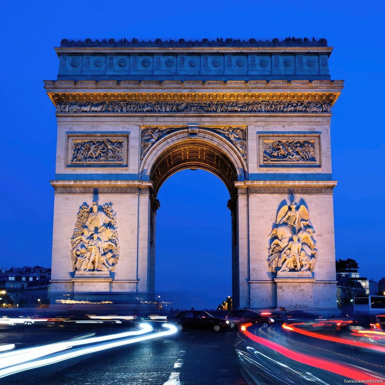 - Architectural Style & Design: Designed by Jean Chalgrin in the Neoclassical style, its form was inspired by the ancient Roman Arch of Titus. However, it is monumental in scale, standing 50 meters (164 feet) high, making it the second-largest triumphal arch in the world. Its surfaces are adorned with immense sculptural reliefs depicting key moments from the French Revolutionary and Napoleonic Wars.