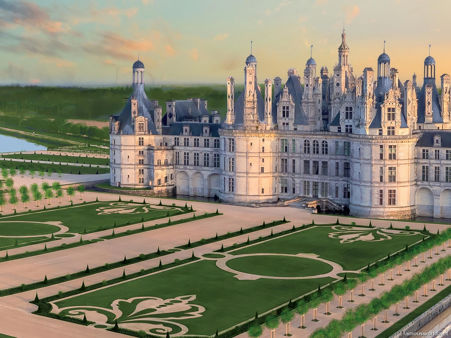 - Architectural Style: Chambord is a prime example of French Renaissance architecture, which combines the forms of a traditional French medieval castle (a central keep with corner towers) with the symmetry, proportion, and ornamentation of Italian classical architecture.