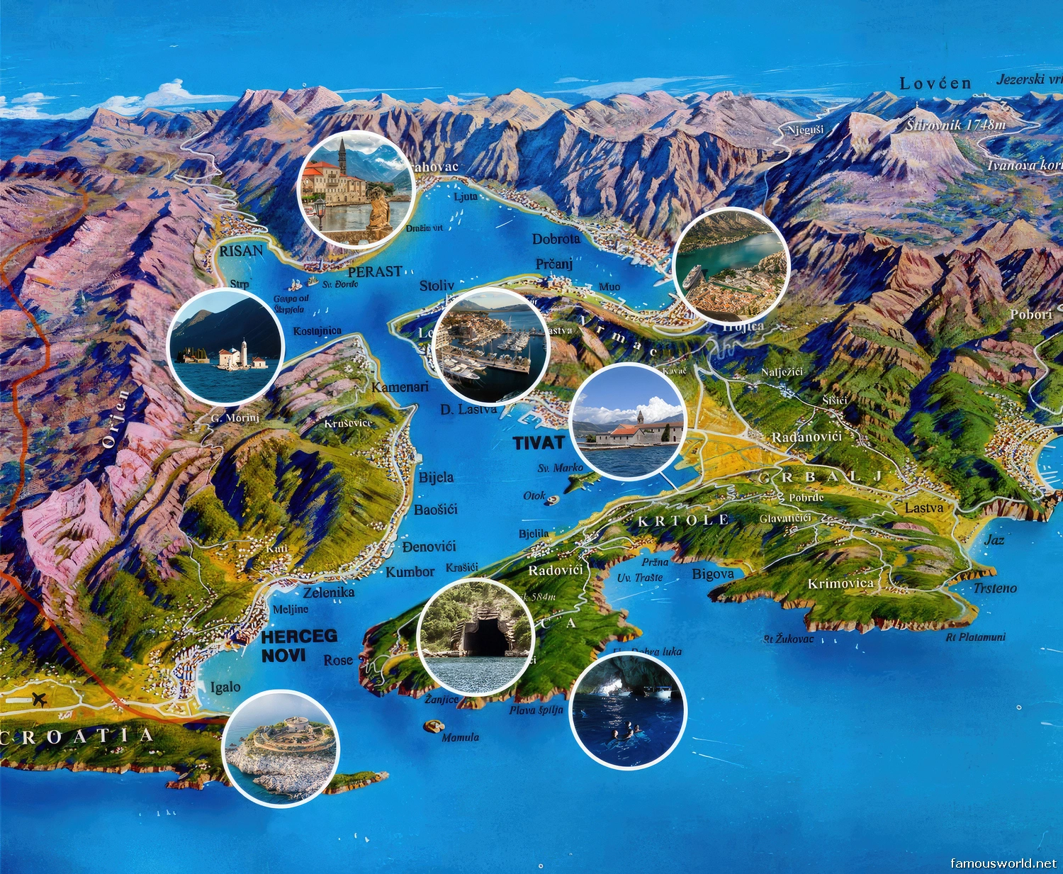 - The “Fjord”: The bay is a complex network of several smaller, interconnected bays, creating a sheltered, winding waterway that penetrates nearly 28 kilometers (17 miles) inland. The sheer limestone cliffs of the Orjen and Lovćen mountains create a stunning, fjord-like setting.