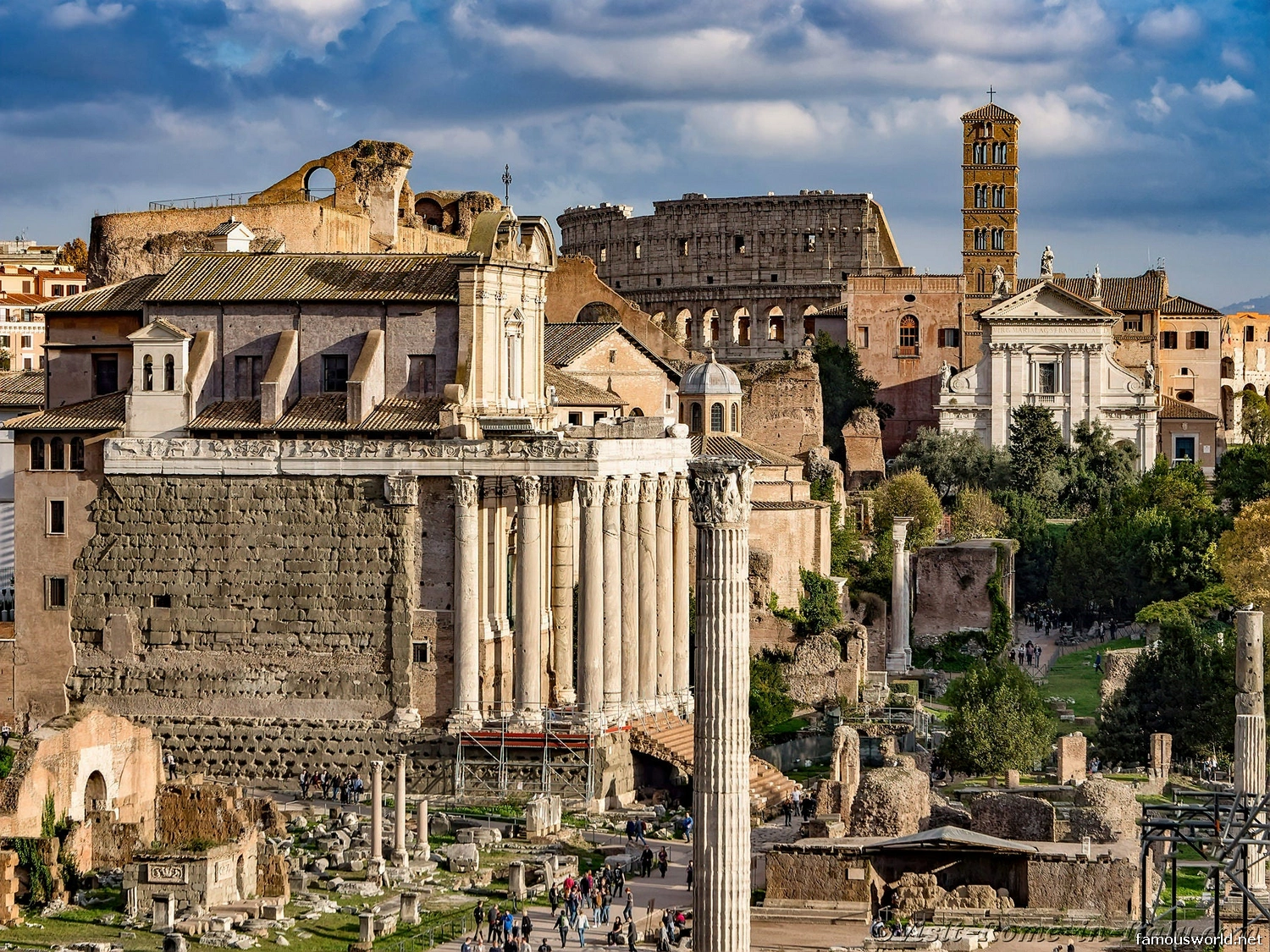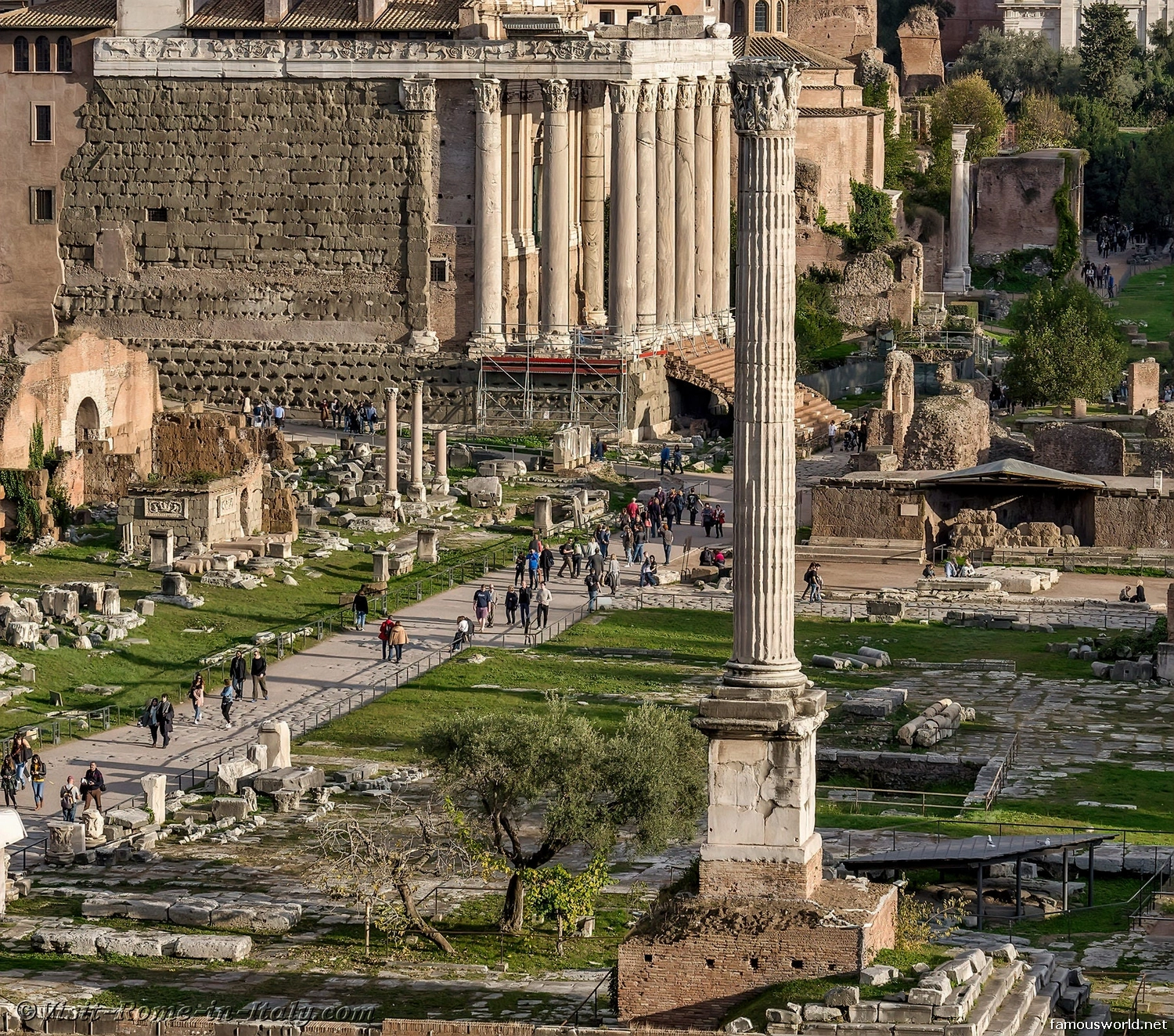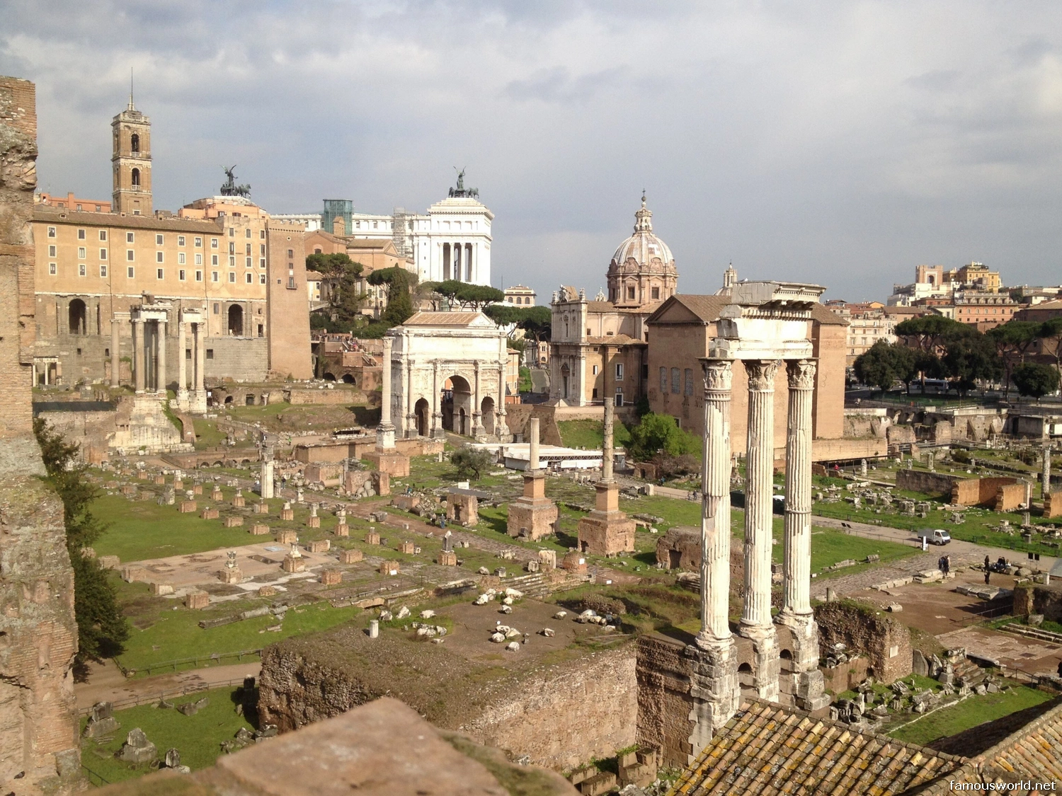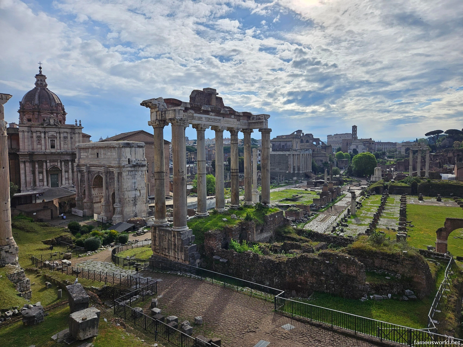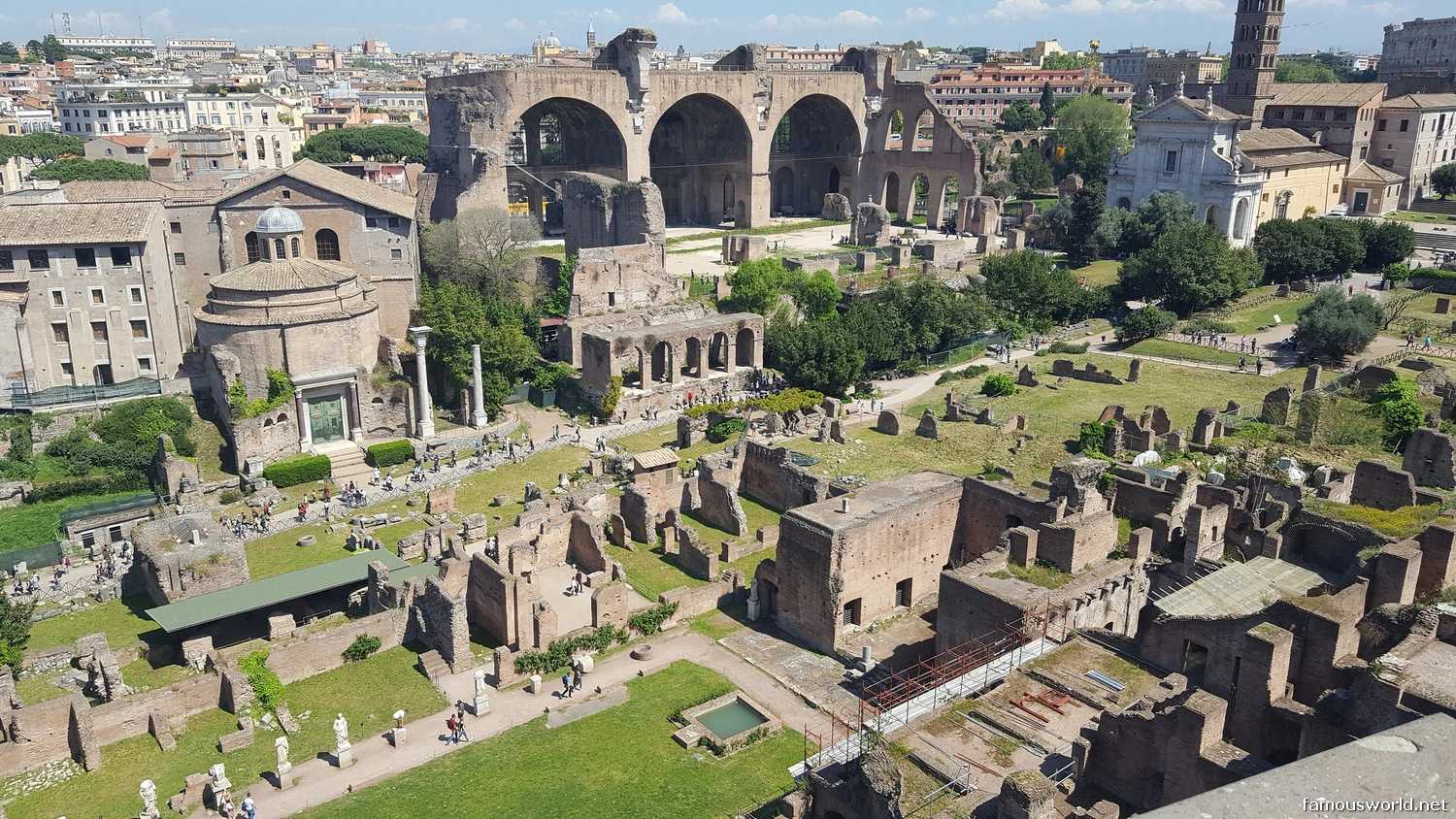 The Forum is part of the same archaeological park as the Colosseum and Palatine Hill and shares the same main entrances.