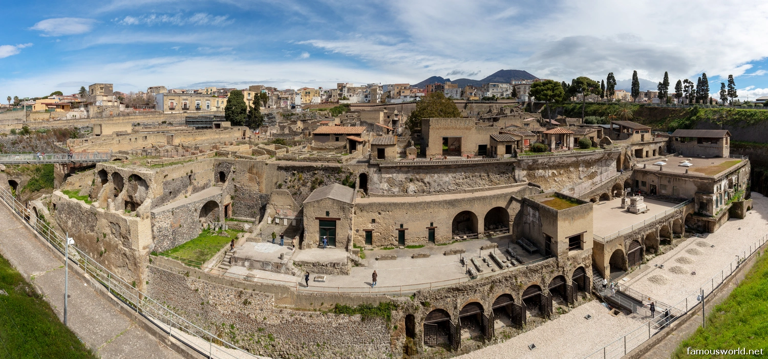 - The Landscape: Both are sprawling complexes of excavated streets, homes, and public buildings that reveal the urban fabric of a Roman city. Pompeii is the larger and more famous site, a bustling commercial town with a grand forum, amphitheater, temples, and numerous villas and shops. Herculaneum was a smaller, wealthier seaside town, and its landscape is more compact.