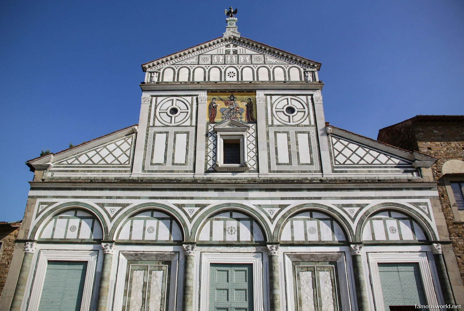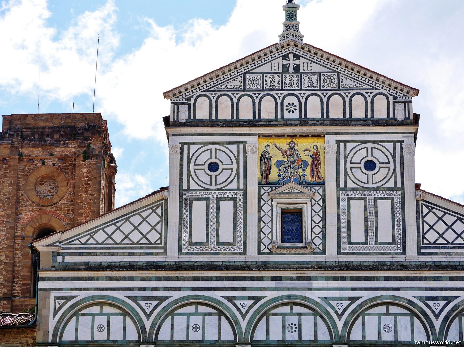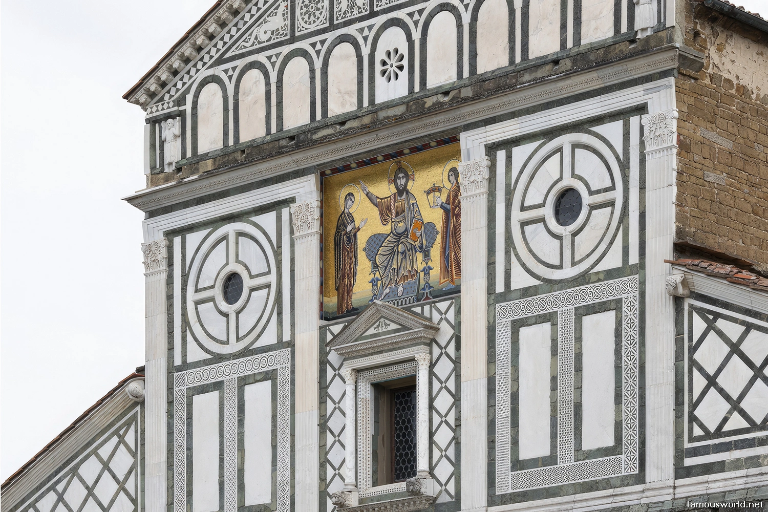 - Tuscan Romanesque Facade: The facade is the church’s most iconic feature and a pinnacle of the Tuscan Romanesque style. It is decorated with intricate geometric patterns of green and white marble. The upper section features a stunning 13th-century mosaic depicting Christ between the Virgin and St. Minias.