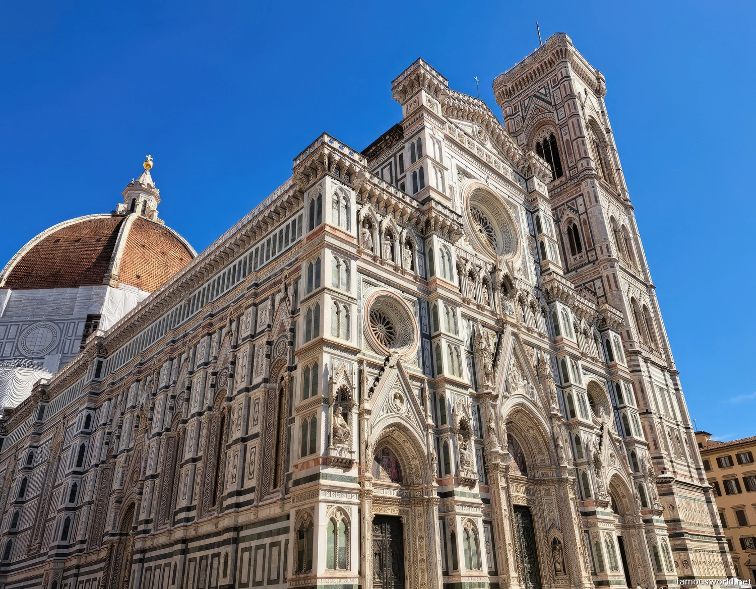 - Giotto’s Campanile: Standing beside the cathedral, the bell tower is a masterpiece of Gothic architecture in its own right, designed by Giotto and renowned for its slender elegance and sculptural decoration.